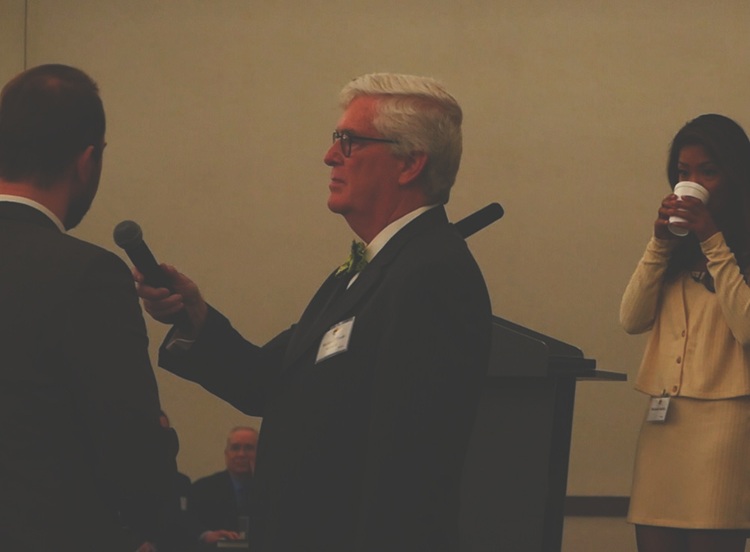 O’Toole is a regular at AmRen conferences. At the 2018 conference, O’Toole briefly spoke to promote The Occidental Quarterly (see discussion of Charles Martel Society, below.) Leaked footage from the 2021 conference shows O’Toole holding the microphone as he assisted Michelle Malkin’s Q&A session.